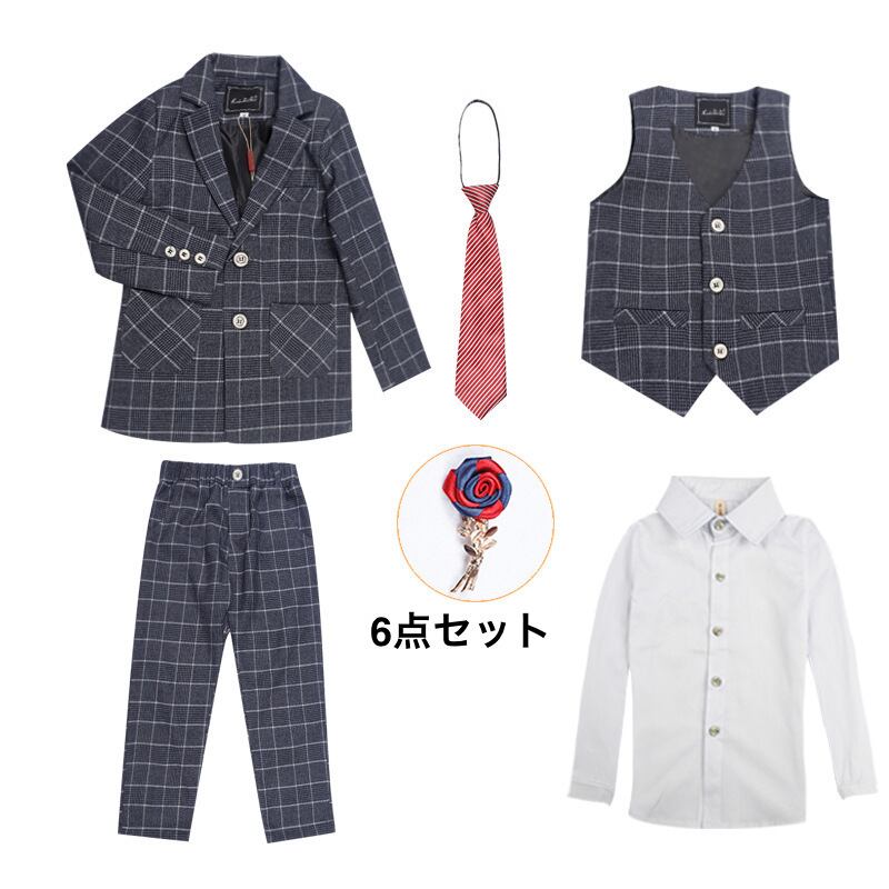 キッズ フォーマル スーツ 卒業式 スーツ 男の子 6点セット 子供スーツ キッズ スーツ 男の子 チェック柄 入学式 スーツ 男の子 子供服 フォーマル スーツ ピアノ入学式 卒園式 小学生 高校90-150CM
