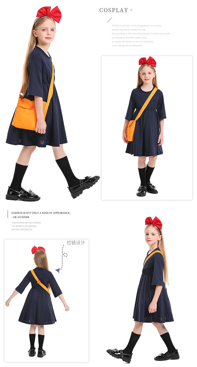 魔女の宅急便コスプレワンピース+カバン+ヘアアクセサリー箒 100₋150㎝
