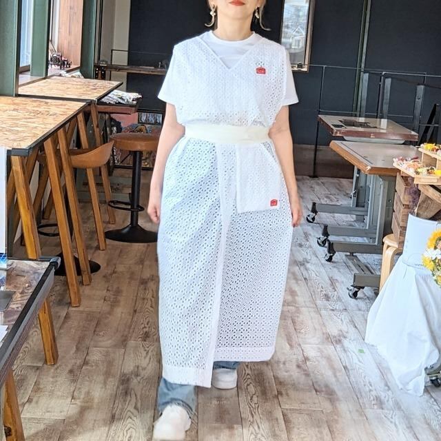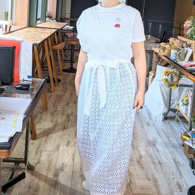 エプロン レース ワンピース風 巻きスカート カフェ レストラン パン教室 料理教室 ガーリー フリーサイズ おしゃれ プレゼント 母の日 お祝い 誕生日 イベント
